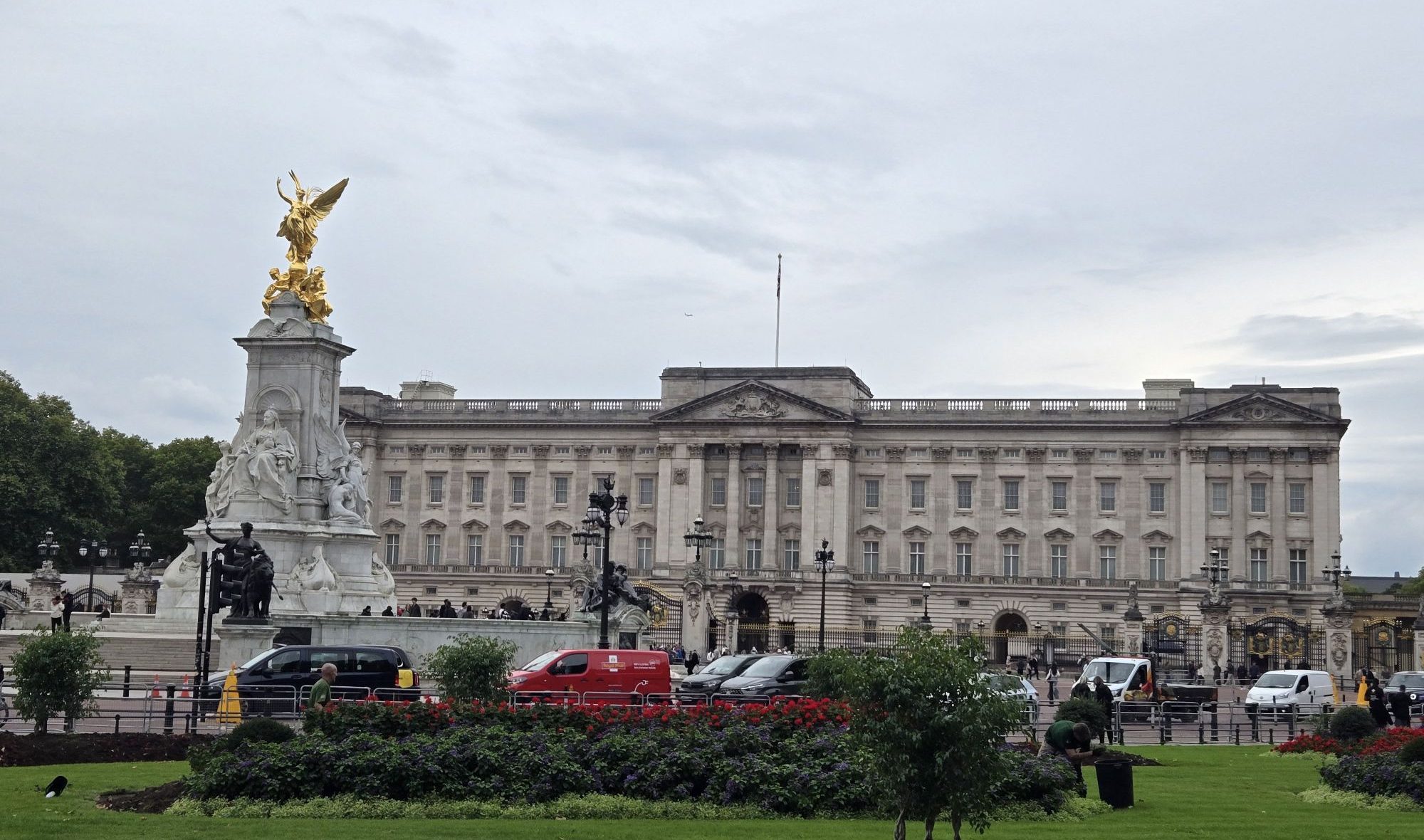 Von dort führte uns der Weg weiter zum Buckingham Palace. Vorbei an schmiedeeisernen Gittern erreichten wir den Platz vor dem Palast – die offizielle Residenz des Königs. Die vergoldeten Embleme, die Wappen und die langen Fassaden verleihen dem Gebäude eine ganz eigene Mischung aus Pracht und Vertrautheit, denn man glaubt, all das schon aus Filmen, Nachrichten und Serien zu kennen. Zur täglichen Wachablösung kamen wir leider zu spät.