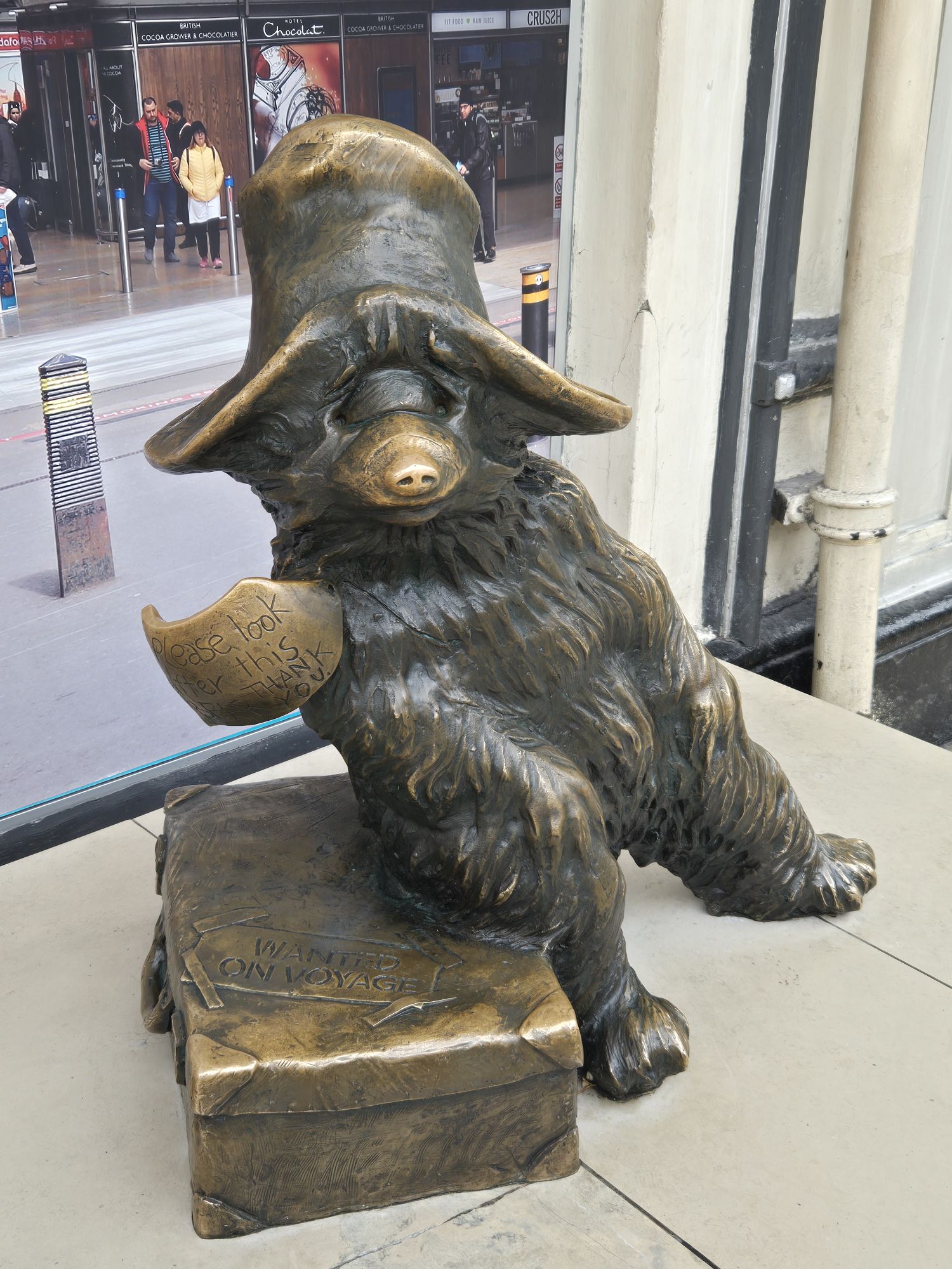 Vom Trafalgar Square – mit Löwen und Blick auf die National Gallery – fuhren wir mit der Tube nach Paddington. Im Bahnhof fanden wir ihn natürlich: den berühmten Paddington-Bären auf seinem Koffer (Galerie ansehen).